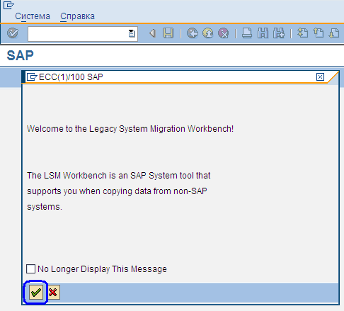 Рисунок 2. Информационное сообщение при запуске LSMW