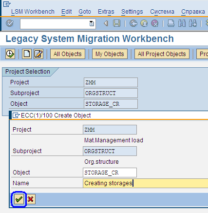 Рисунок 3. Создание Object для транзакции LSMW