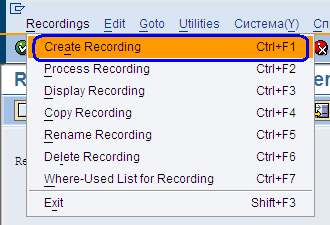 Рисунок 9. Меню Recording -> Create Recording