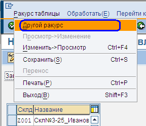 Затем необходимо перейти в подробные адресные данные склада. Для этого переходим по меню Ракурс таблицы -> Другой ракурс (Рис.15)