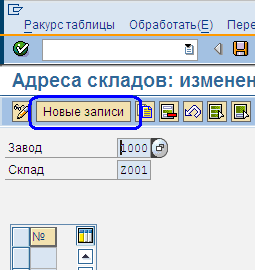 В открывшемся окне (Рис.17) для создания номера адреса склада необходимо нажать кнопку «Новые записи»,