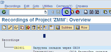 После сохранения данных в Запросе выходим из транзакции OX09 к ведению записи в LSMW, последовательно нажимая кнопку «Назад», пиктограмма