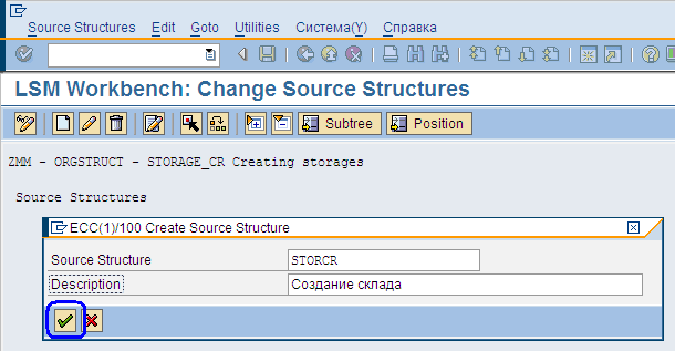 В появившемся окне (Рис.33) задаем Source Structure (задаем имя - создаем самостоятельно) и Description (Описание); затем нажимаем «Зеленую галочку», пиктограмма