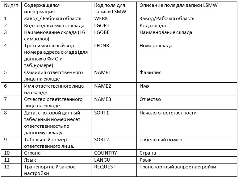 В данной статье будет рассмотрена пакетная загрузка основных данных складов с помощью транзакции LSMW. LSMW является инструментом для миграции внешних данных в систему SAP. В данном случае мы будет рассматривать пакетную загрузку из файла, сделанного в программе MS Excel.