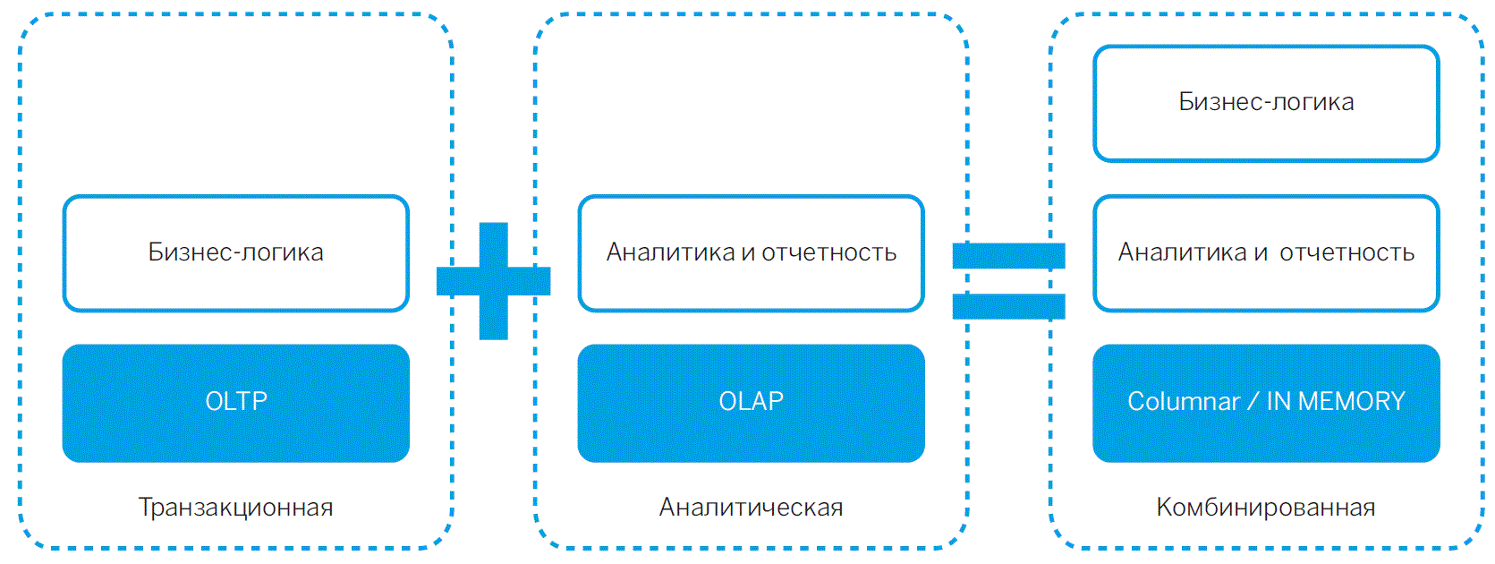 Напротив, в концепции, в которую включается SAP HANA как база данных, появляется возможность переносить отдельные элементы логики приложений на уровень базы данных и за счет этого повышать производительность транзакций и отчетов..