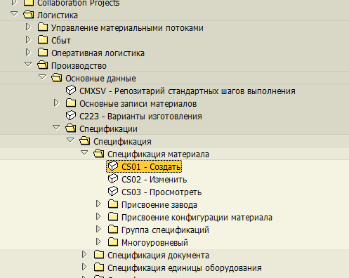 Ведение спецификации осуществляется с помощью транзакций CS01/CS02/CS03.