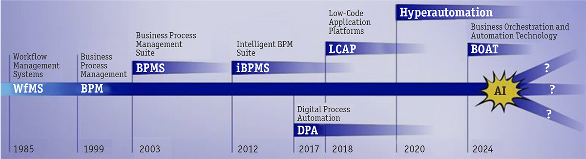 В конце концов, попытались вбросить новый термин — BOAT (Business Orchestration and Automation Technologies), но в эту «лодку» уже никто не захотел садиться, термин звучал уж совсем вымучено.