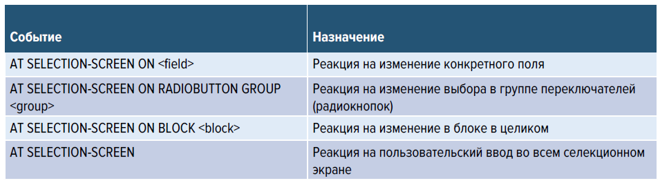 Табл. 2. Примеры использования AT SELECTION-SCREEN на практике