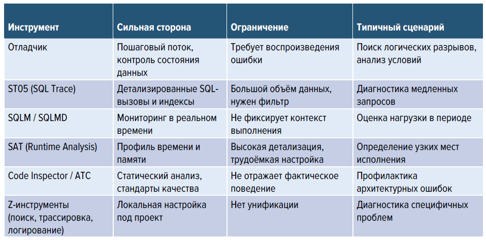 Табл. 3. Сравнение инструментов анализа ABAP-кода