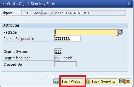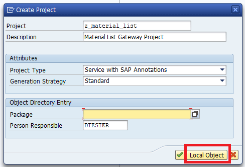 Нажмите кнопку «Локальный объект» или присвойте проект транспортному пакету. В данном случае я создал локальный объект. Локальные объекты в другие системы не переносятся. Если в ландшафте SAP присутствует несколько систем и инстанций SAP, следует выбрать транспортный пакет для переноса разработок в связанные системы. Но в данном случае для упрощения мы будем работать локально.