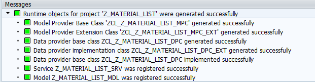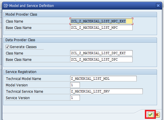 Оставьте предложенные имена без изменений. При необходимости их все же можно изменить. Классы ZCL_Z_MATERIAL_LIST_MPC и ZCL_Z_MATERIAL_LIST_MPC_EXT являются классами провайдера модели. Классы ZCL_Z_MATERIAL_LIST_DPC и ZCL_Z_MATERIAL_LIST_DPC_EXT являются классами провайдера данных. Большая часть работы для внедрения выполняется при переопределении методов в классе ZCL_Z_MATERIAL_LIST_DPC_EXT (методы содержатся в созданном классе провайдера данных ZCL_Z_MATERIAL_LIST_MPC_EXT).