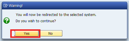 На рис. 15 показано всплывающее предупреждение SAP. Это предупреждение уведомляет пользователей о том, что они будут перенаправлены в выбранную систему. Нажмите кнопку «Да» в этом всплывающем окне для перехода к экрану «Выбор псевдонима системы» (хаб к бэкэнду), представленному на рис. 16.