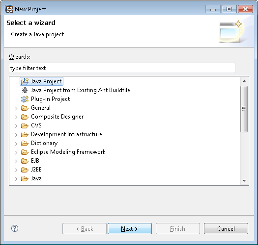 Реализация класса мэппинга начинается с создания проекта Java. В простейшем случае можно создать простой проект Java с использованием мастера через меню File –> New –> Project…(Рис.1).