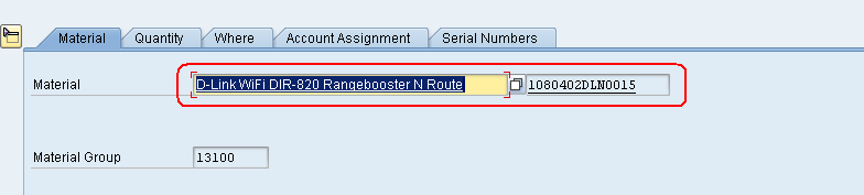 Я задался вопросом, нельзя ли реализовать в транзакции MIGO механизм работы, при котором в поле ввода кода материала сканировался (вводился) бы серийный номер. После этого система выполняла бы поиск кода материала (ОЗМ) по такой же схеме, как и поиск ОЗМ при вводе части краткого текста наименования. Оказалось, что это возможно и довольно просто реализовать.